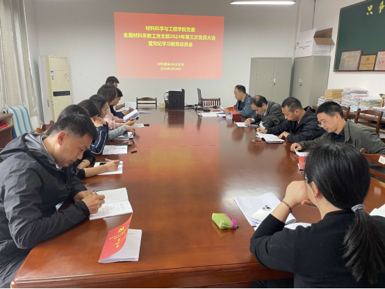 金属材料系教工党支部召开2024年第三次党员大会暨党纪学习教育动员会。党支部书记王永强主持会议。