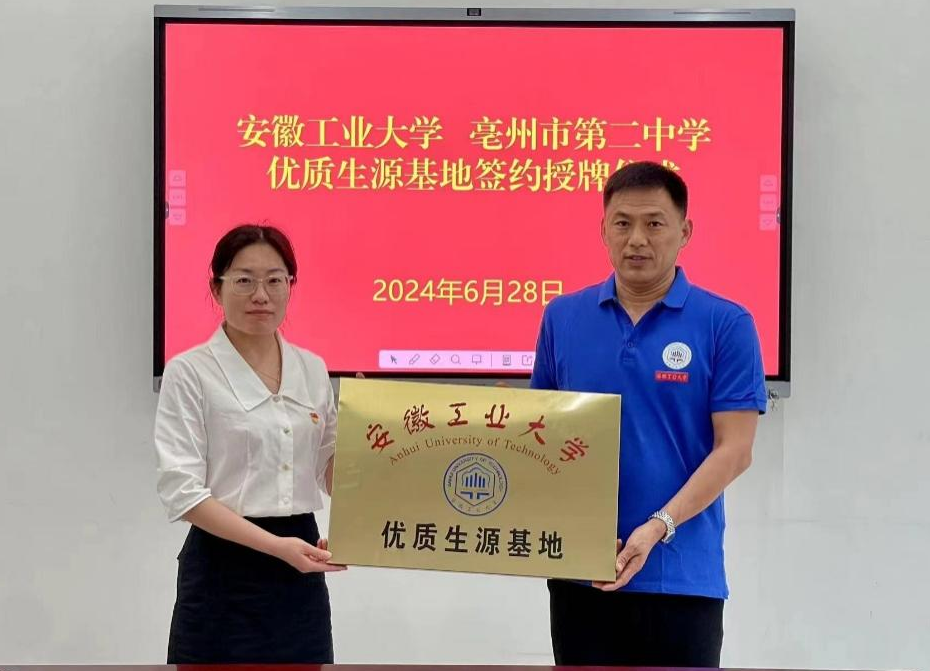 学院于28日下午与亳州二中签订了优质生源基地协议,并举行了授牌仪式。通过校校合作,相互支持,共同发展,提升学校和生源基地的社会声誉。通过招生、人才培养合作和资源共享,充分实现高校与中学人才培养的有机衔接,发挥桥梁纽带作用。学院将不断提升招生服务水平,为更多优秀学子提供精准的信息指导和广阔的发展空间。(撰稿:李俊哲 审核:赵何腹 杨建)