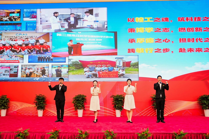 张世宏、郑军、张佩佩、李盼四位老师指导,博士研究生张泽、刘亮亮、硕士研究生王宇琦、本科生余丽杰组成。团队以“精研材料科学、守护国之重器”为主题,结合所学专业和研究方向,深挖学科思政基因及育人元素,聚焦我校师生以先进材料“润滑”提速航天领域发展的成果,阐述了我校瞄准国家重大战略需求,加强校企合作共促“智造”中国建设,以高峰学科建设赋能地方高质量发展的创新举措。