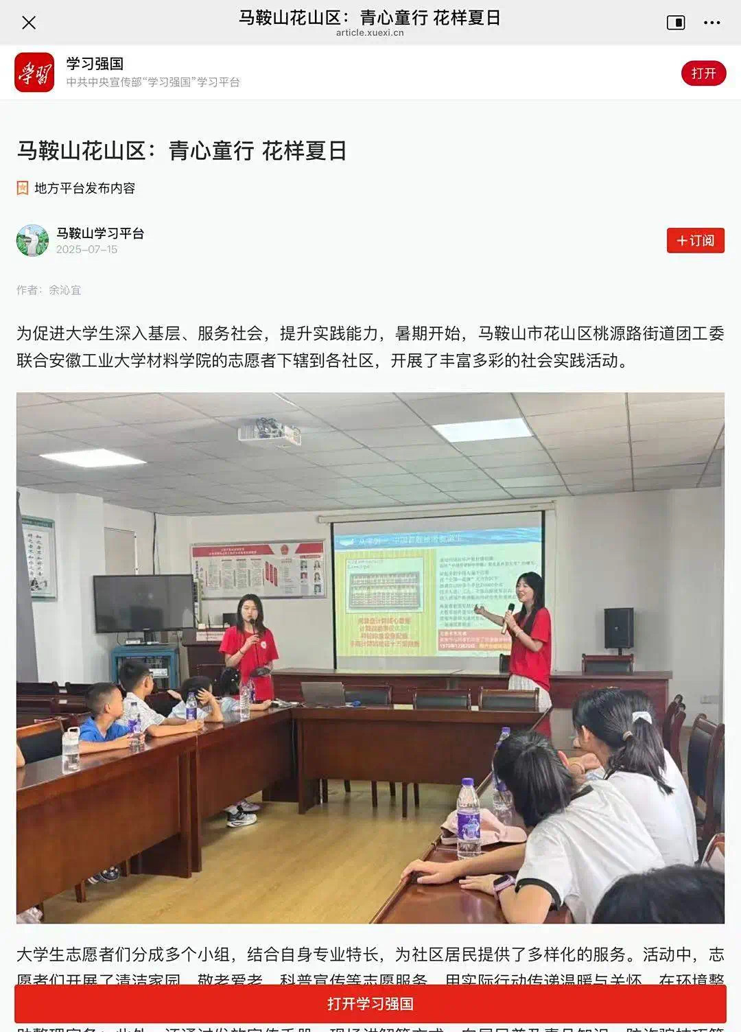 为促进大学生深入基层、服务社会,提升实践能力,暑期开始,马鞍山市花山区桃源路街道团工委联合日本动漫