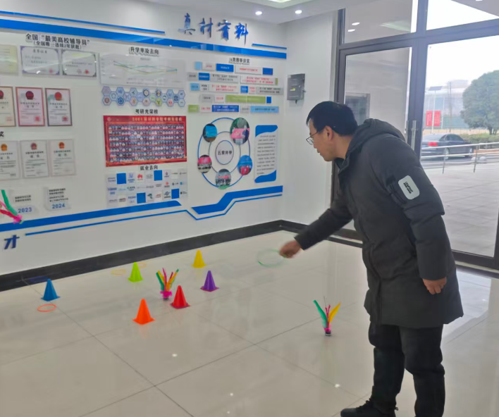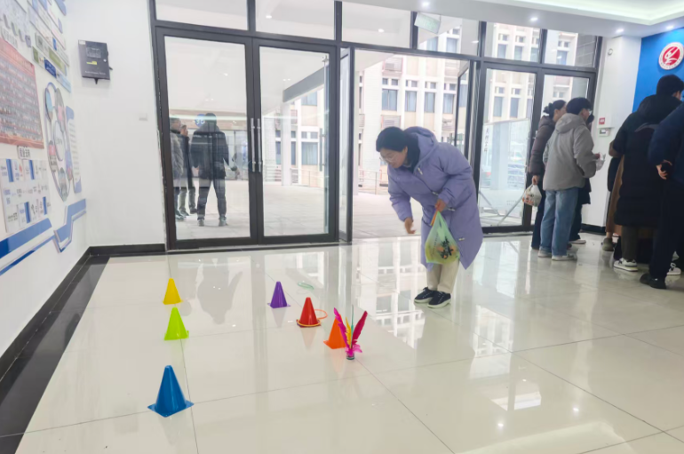 活动设置了形式多样的趣味项目,一分钟快速跳绳紧张刺激,踢毽子、掷飞镖比赛引来阵阵喝彩,趣味套圈、夹玻璃珠和吹乒乓球项目则充满了趣味与挑战。教职工们踊跃参与,各展所长,在轻松愉快的比赛中放松身心,交流感情,现场气氛热烈,其乐融融。
