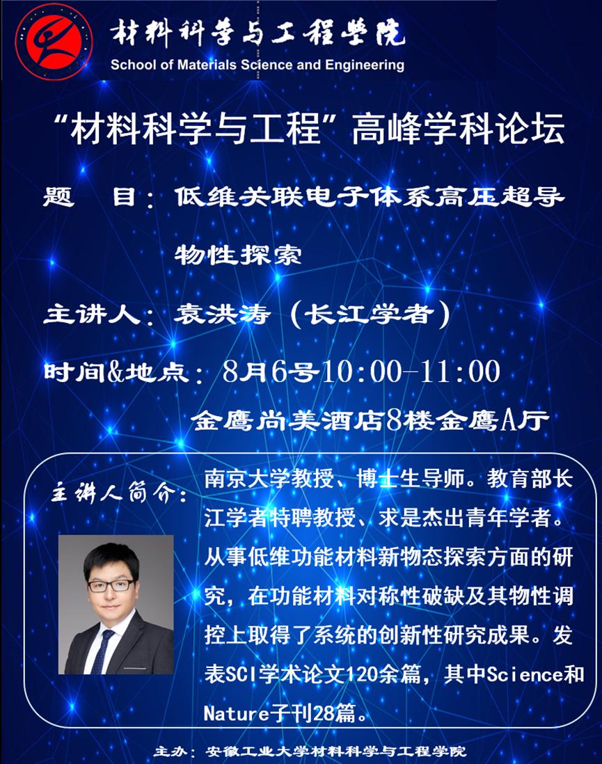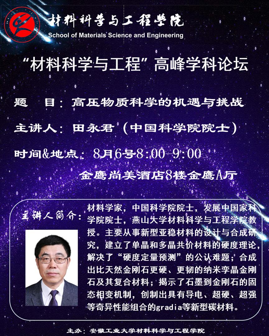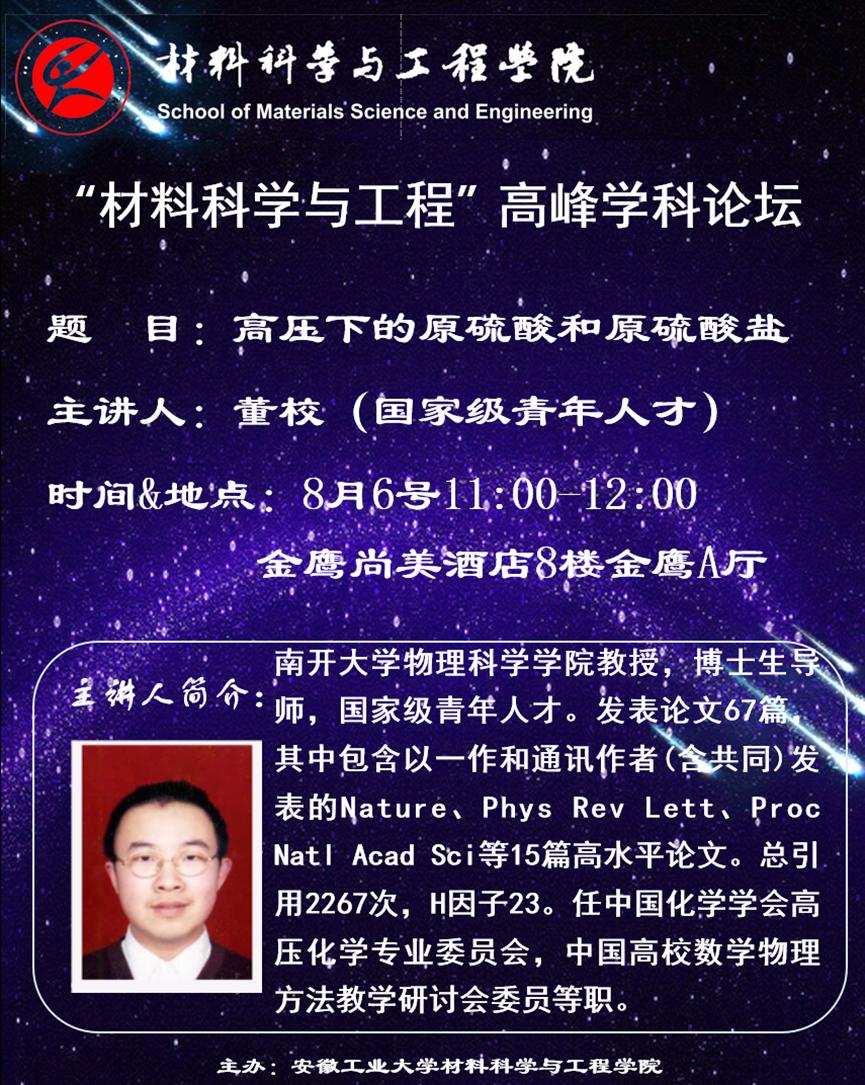 “材料科学与工程” 高峰学科论坛——高压科学与新材料