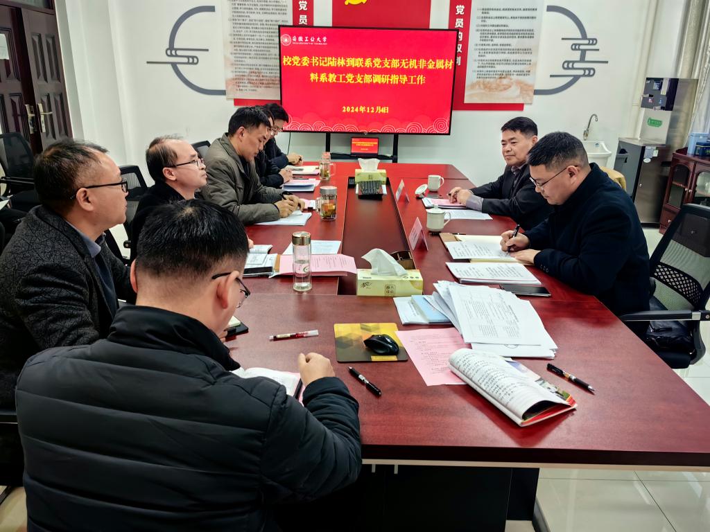 会上,陆林对无机非金属材料系教工党支部党建工作及事业发展给予了充分肯定。他强调,党支部要持续加强理论学习,特别要深入学习党的二十大和二十届三中全会精神,确保党的理论和路线方针政策在基层得到贯彻执行。要统筹党建与业务发展,把人才培养、团队建设、学科建设等工作融入党建,避免“两张皮”现象。党支部要对标“七个有力”标准,提高政治判断力;要在“严”和“实”上花力气,提高政治领悟力;在“深”和“细”上出实招,提高政治执行力。切实把党的政治优势、组织优势转化为推动高质量发展的强劲动能,发挥党支部在教育教学、学科建设、科学研究、人才培养中的核心作用,解决专业发展过程中的难题。