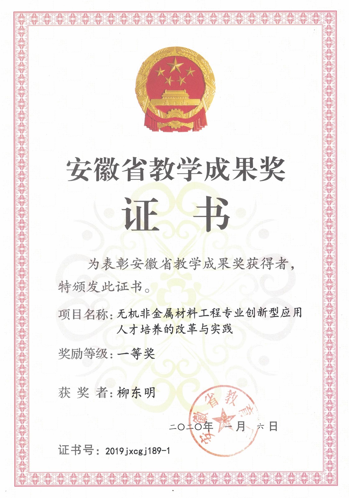 安徽省教学成果一等奖 2020