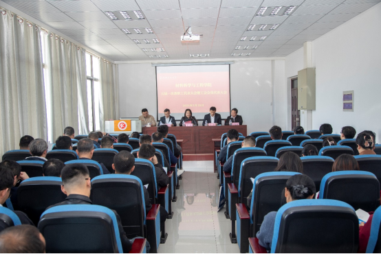 在秀山校区材料楼南516召开第五届一次教职工代表大会暨工会会员代表大会。校工会主席李波、学院领导班子成员以及全体双代会代表参加了会议,大会由院党委副书记、纪委书记、副院长汪盛颜主持,