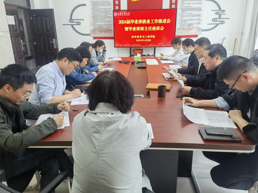 在材料南楼405召开2024届毕业班班主任座谈会暨就业工作推进会。院党委书记杨建,院党委副书记、副院长、纪委书记汪盛颜,毕业班辅导员及班主任参加会议。会议由汪盛颜主持。
