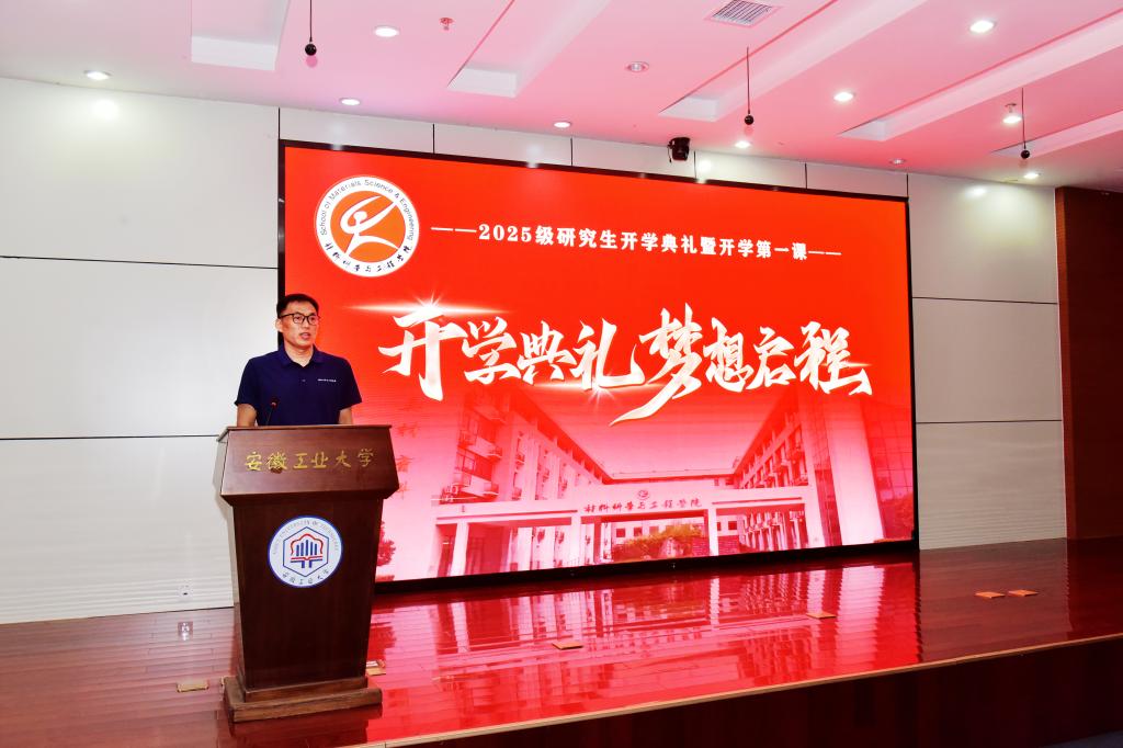 、学科科研、人才培养等四个方面为新生们展示了校院的优势与特色。他对全体2025级研究生提出了殷切期望,希望新生们能够善于坐冷板凳,以足够的耐心和毅力面对科学研究;不要急于求成,要经得起失败和挫折;严格遵守学术规范,杜绝任何学术不端行为。最后他以“多交流、多动手、多思考、多总结、多收获、多提高”为新生送上寄语,鼓励大家在研究生阶段不断提升自我。