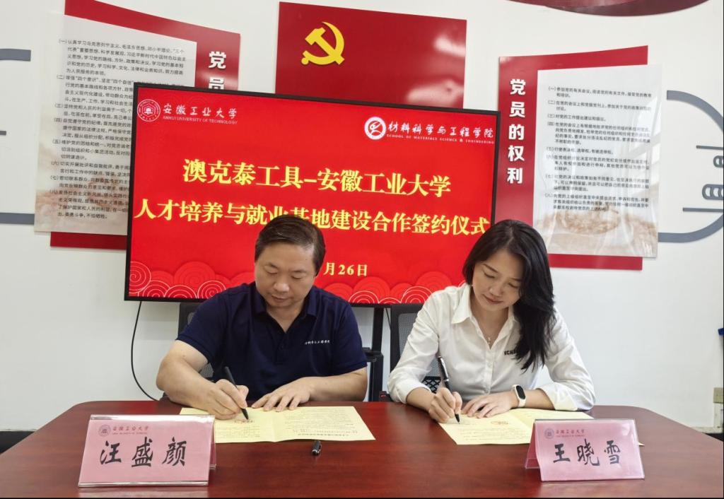 ,通过校企座谈、合作签约及专场招聘宣讲系列活动,深化产教融合,搭建毕业生高质量就业平台。赣州澳克泰公司执行董事助理兼运营中心副总王晓雪,上海澳克泰总经理叶铭,赣州澳克泰公司技术顾问、全国人大代表、全国劳动模范、校友邱联昌等企业代表,学院党委书记杨建,党委副书记、纪委书记、副院长汪盛颜,毕业班辅导员参加座谈交流会。